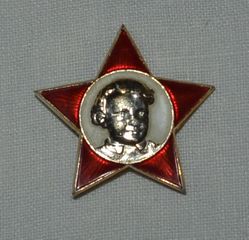 Нагрудный  значок — пятиконечная рубиновая звезда с портретом Ленина в детстве. Выдавался детям начальных классов при вступлении в ряды октябрят. 20 век